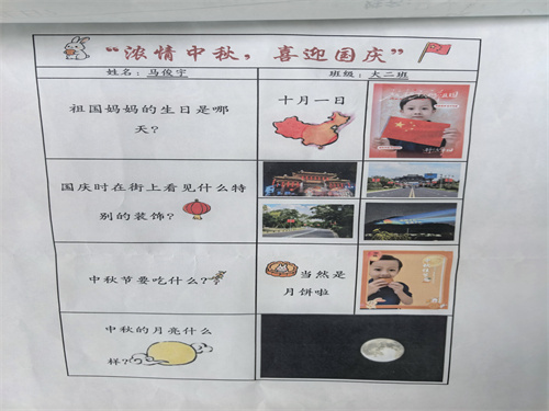 当国庆和中秋撞了个满怀,双节同庆,小朋友跟着爸爸妈妈出去游玩感受祖国的大好河山,领略到各种美好风景,小朋友和爸爸妈妈一起用表格、图夹文和拍照片的方式记录下来,一起来看看吧!