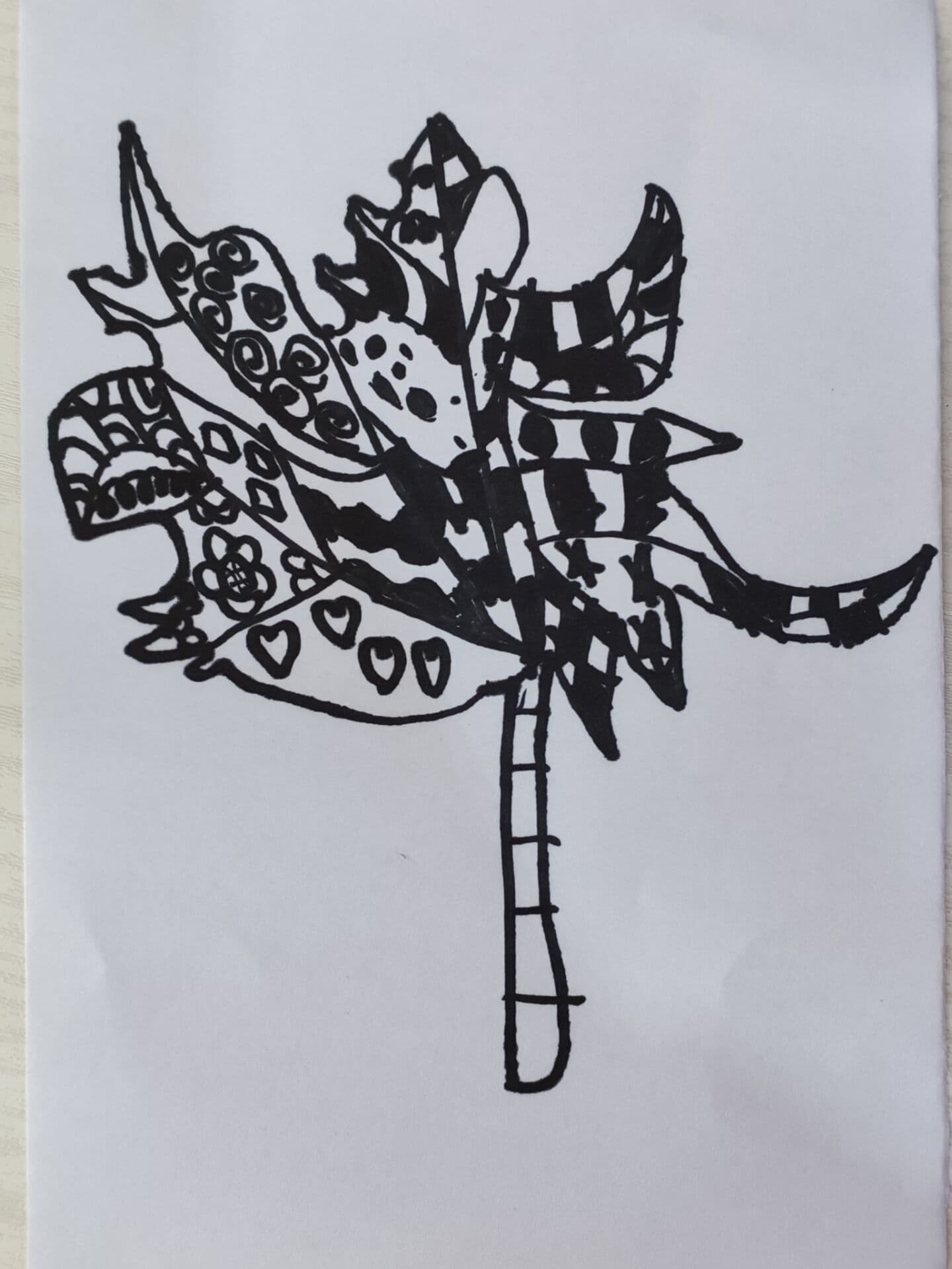 这片枫叶可不止是叶子——你看,叶片里窝着小花、卷着圈圈,连边缘都偷偷藏了“小眼睛”,像是刚从童话里跑出来的小精灵~