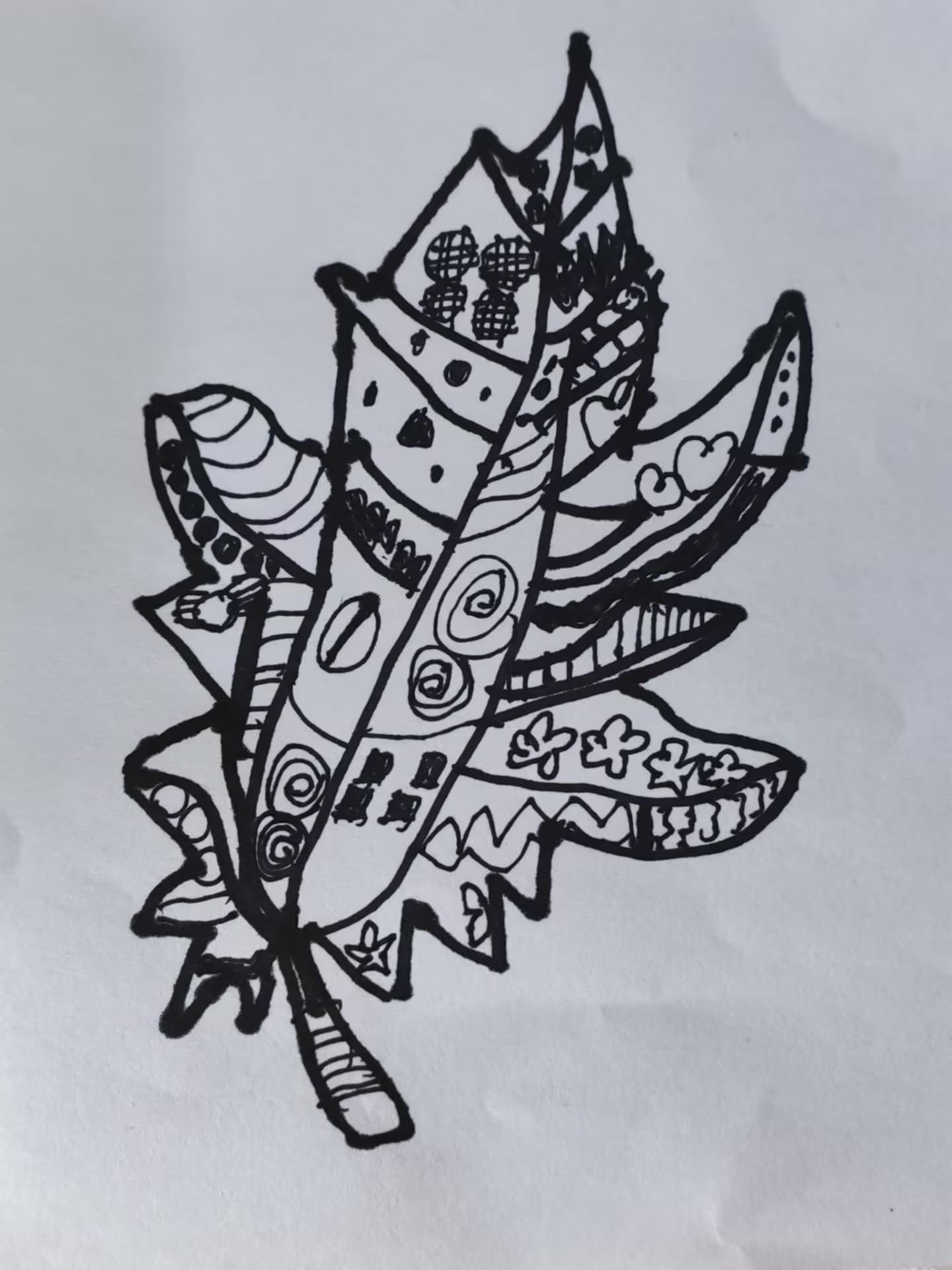 旁边的装饰是它的“森林小伙伴”,每根线条都裹着孩子眼里的秋天:不是冷冷的落叶,是会眨眼睛、带花纹的“魔法枫叶”呀。