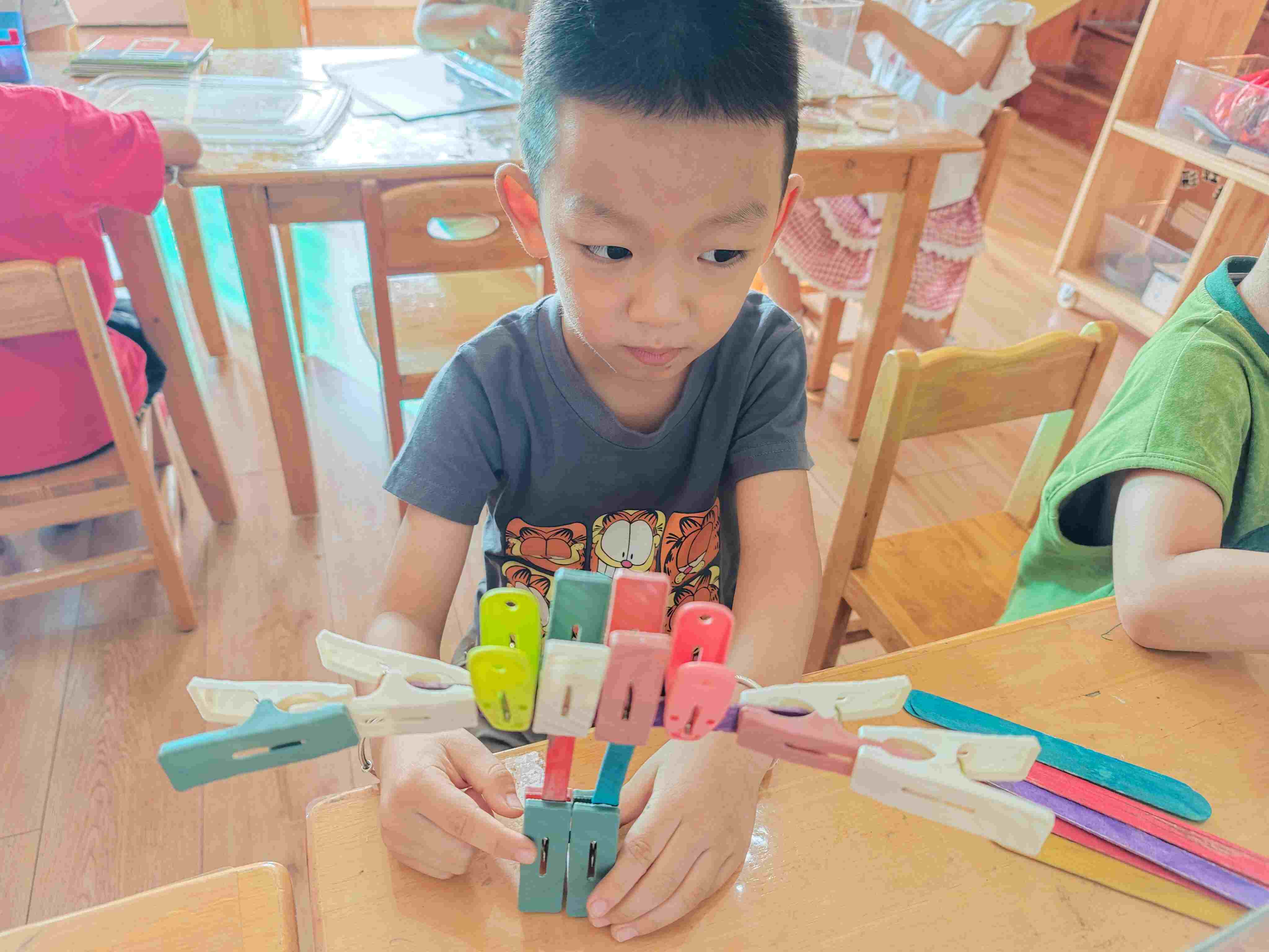 在区域游戏中,孩子如同小小的探索家,“我要搭一辆小汽车”,“我要用夹子拼一个机器人”“我最喜欢玩区域游戏了”孩子们在区域游戏中探索不同的欢乐与成长。