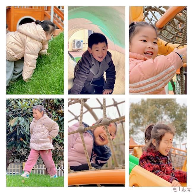 户外活动中,小神兽们攀爬架上勇于攀登,小山洞里惊喜探险,小宝贝们回到熟悉的校园探险依旧!