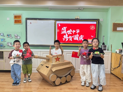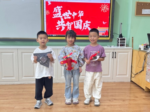 刚开学的时候,我们和老师一起观看了阅兵仪式,我们的祖国妈妈真是太了不起了。回家后,我和爸爸妈妈一起制作了厉害的手工,飞机、火箭、大坦克……真是太酷了!