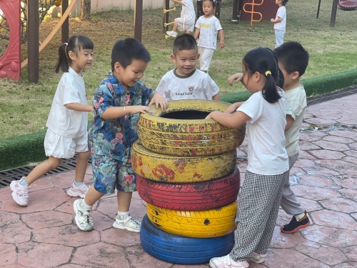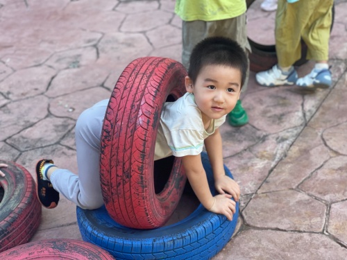 一个滚动的轮胎,是孩子们的太空飞船和冒险滚轮。爬、跳、推、钻,每个游戏都是新发现。汗水与欢笑,是阳光下最美的成长印记。