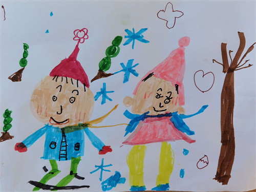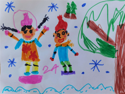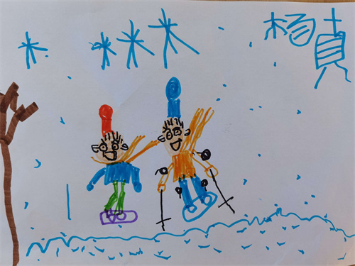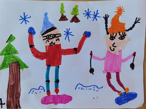 新《纲要》提出幼儿美术教育的价值在于它激发情趣、激发兴趣;培养幼儿的创新意识;赋予幼儿满足感和成就感。我想为什么不能设计一节有关发型的美术活动呢?我班幼儿已有了一定的欣赏能力和动手能力,根据我班幼儿年龄特点,设计这节美术活动《滑雪啦》。旨在通过对生活中各种运动姿势的观察和认识,将自己所感受到的美积极、大胆、快乐的表现出来,让每个孩子都真正的体验到美术活动的乐趣。